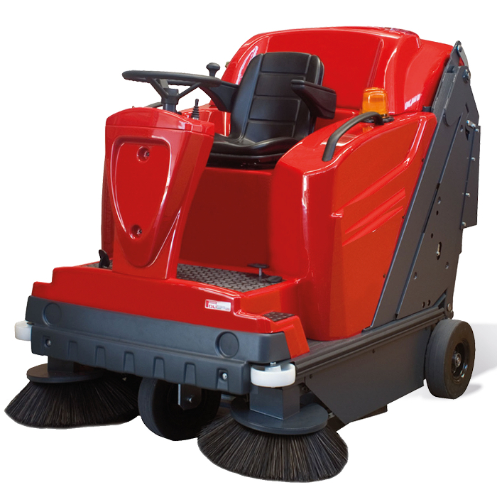 Barredora conductor diesel. Productividad: 11500 m2/h. Ancho barrido cepillo central: 900 mm. Ancho barrido cepillo lateral: 1450 mm.