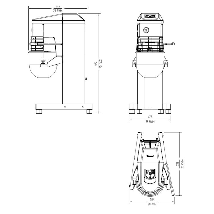 Batidora-mezcladora profesional para uso intensivo. Capacidad del caldero: 20 L.