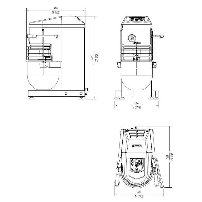Peso: 44 kg. Dimensiones caldero: 279 x 236 mm. Capacidad de harina (60% agua): 3 kg. Temporizador (min-máx): 0 - 30 min. Potencia total: 550/750 W. Aviso acústico al final del ciclo. · Variación electrónica de velocidad. Provisto de protector de seguridad. Subida-bajada del caldero mediante palanca. Doble microrruptor de seguridad, para la posición del caldero y del protector. Pies y caldero en acero inoxidable. Mantenimiento y reparación sencillos. Incluye: caldero, gancho amasador en forma de espiral, paleta mezcladora y batidor de varillas.
