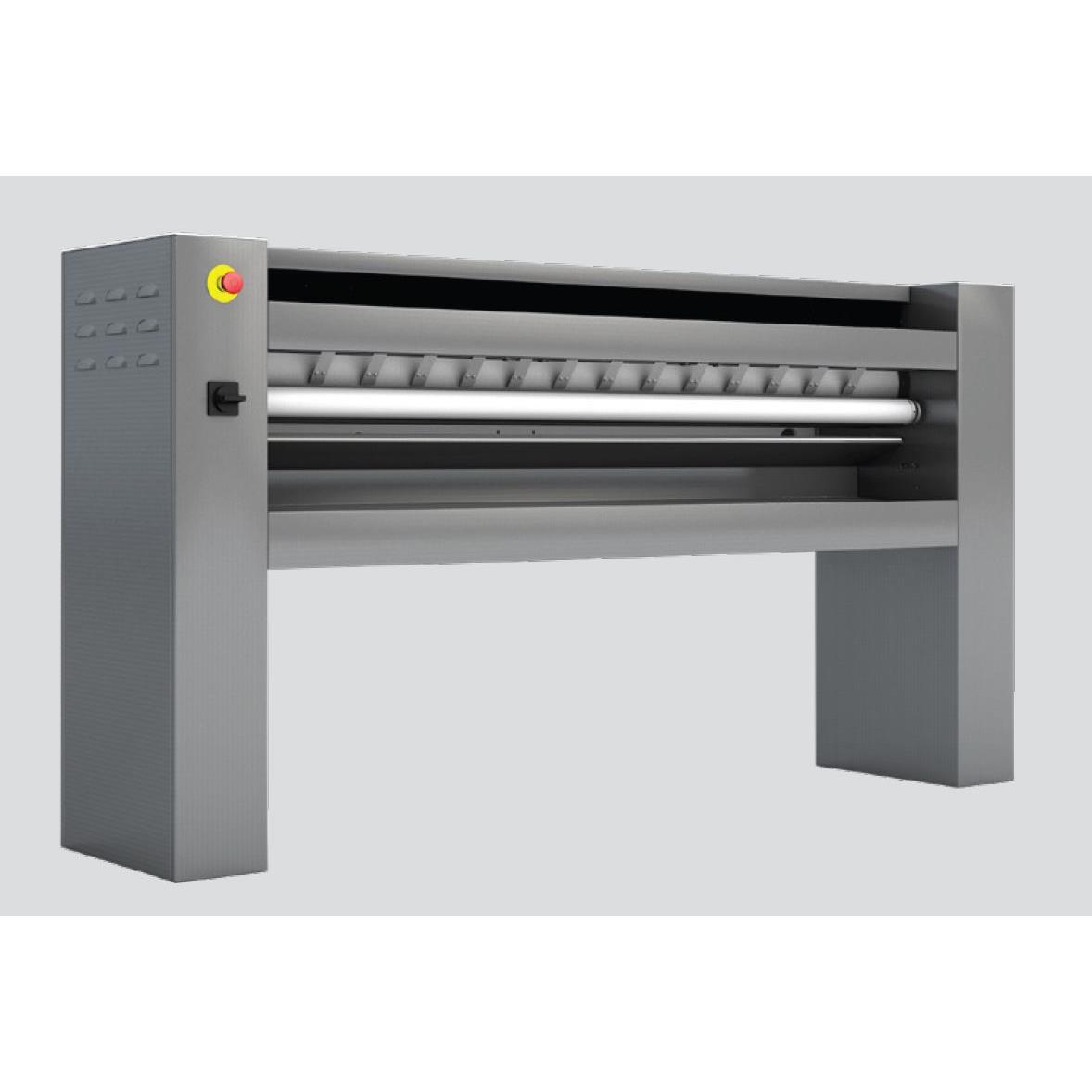 Introducción y recepción de prendas por el frente. Calefacción eléctrica. Microprocesador, 7 velocidades preestablecidas. Motor con variador de frecuencia. Enfriamiento automático hasta 80 ºC. Introducción y planchado mediante bandas de Nomex-polyester. Paneles de acero pintado. Doble paro de emergencia: barra salvadedos y pulsador de paro encima del panel de control. Seguridad sobrecalentamiento mediante 2 termostatos.
