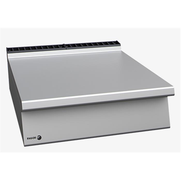 Encimera fabricada en Inox AISI-304 de 2 mm de espesor, con cantos redondeados para una fácil limpieza. Protector de chiminea de hierro fundido espaltado de alta temperatura. Módulos preparados para acoplar un grifo de llenado o columna de agua en su parte posterior.