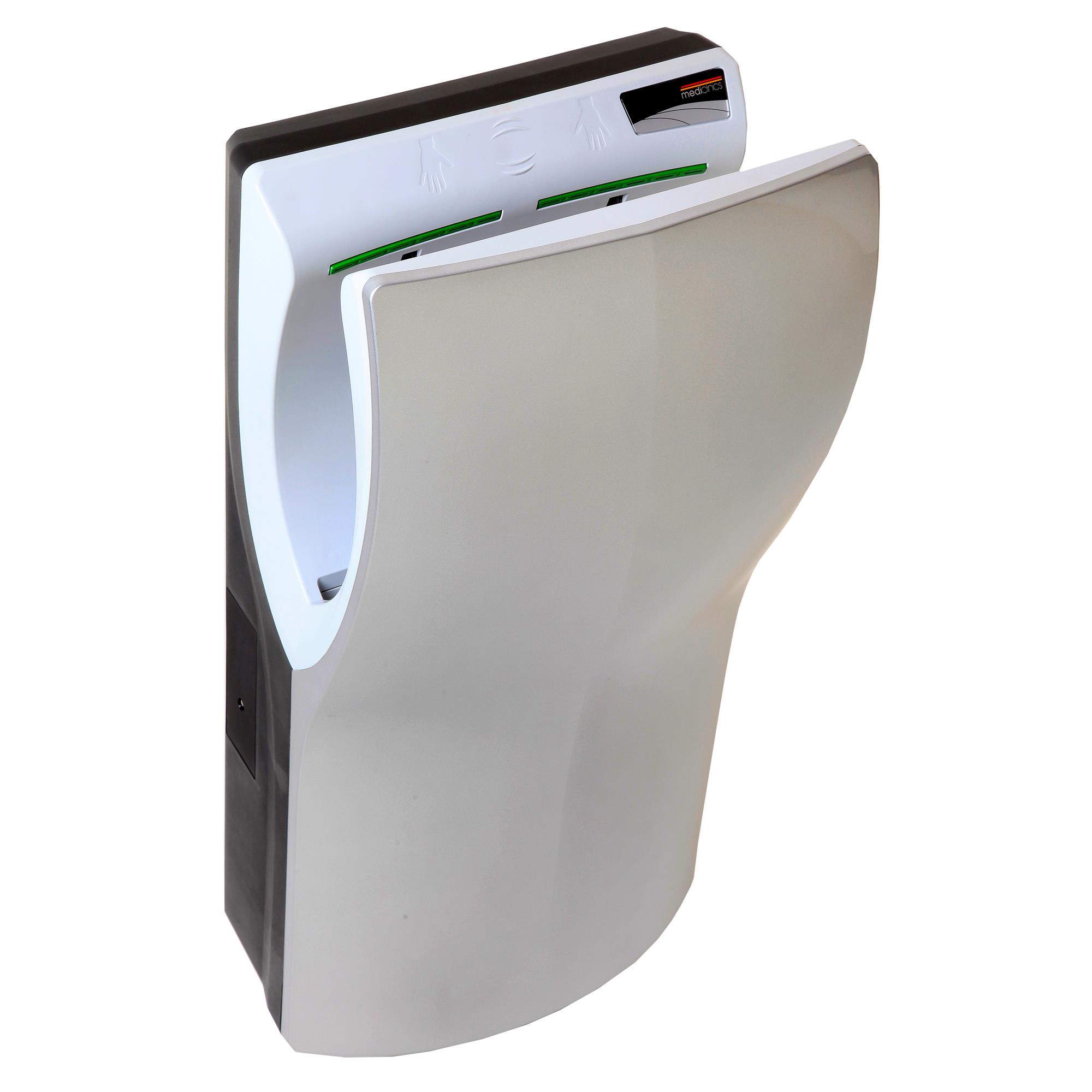 2 pares de sensores infrarrojos en ambos lados de los embellecedores exteriores para el accionamiento automático. Velocidad máxima de salida del aire a 410 Km/h. Incorpora un medio filtrante HEPA que filtra las partículas sólidas en suspensión (polen, ácaros del polvo, humo del tabaco, etc) mejorando notablemente la calidad del aire. Protección antimicrobiana y antibacteriana Biocote® basada en la tecnología de iones de plata. Desconexión automática a los 30 segundos de uso continuado. Bajo nivel sonoro (62 dBA en modo ECO). CARCASA: fabricada en plástico ABS de 3 mm de espesor. BASE: fabricada en plástico resistente al fuego PA6V0.