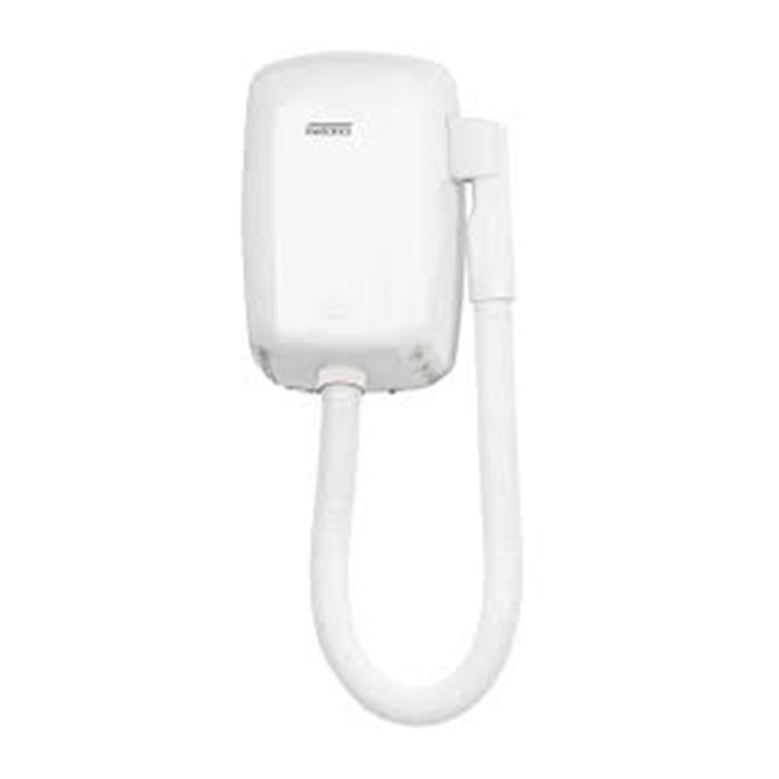 Secador de pelo automático con tubo flexible, carcasa fabricada en acero inox AISI 304, acabado blanco. Potencia: 200 - 1000 W.
