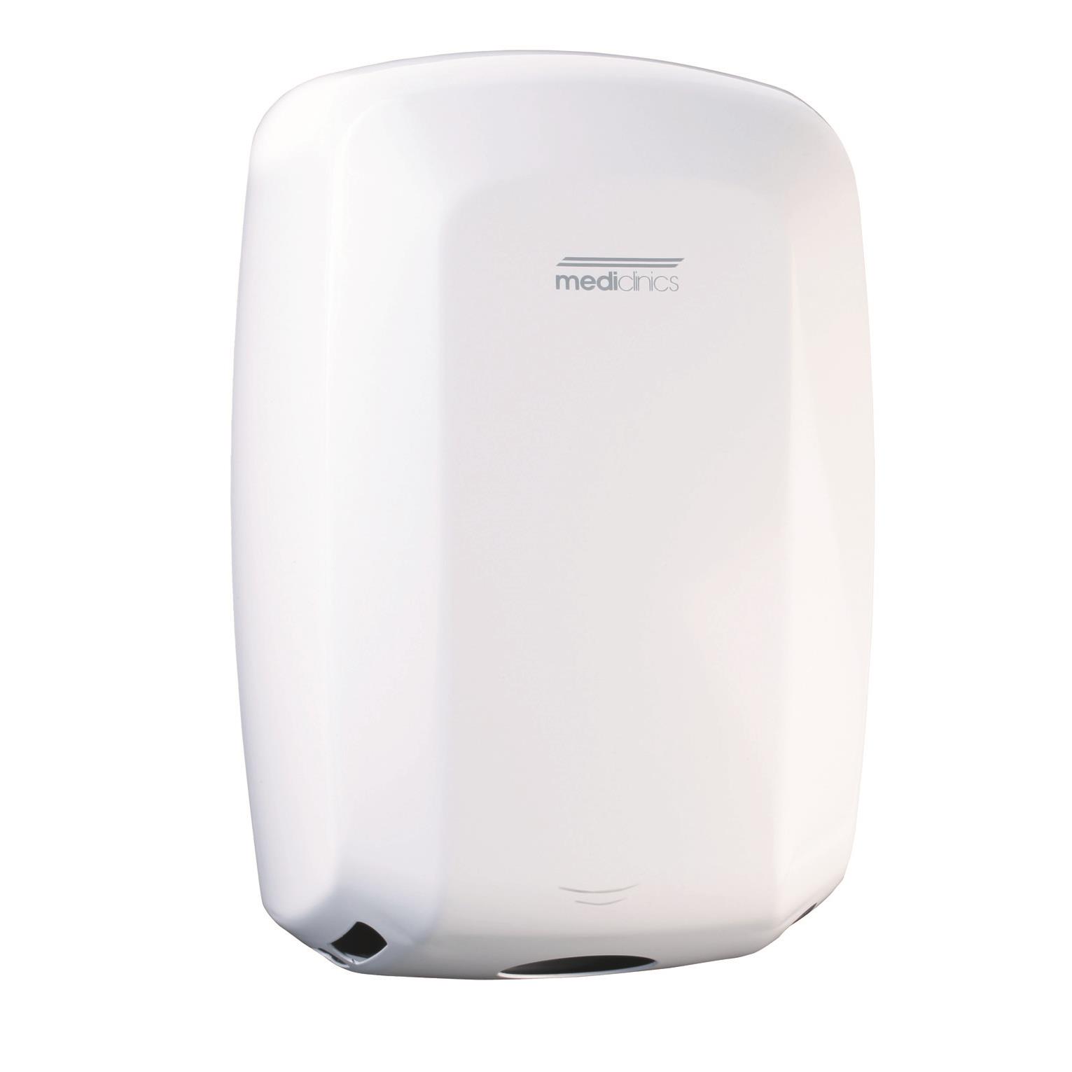 Secamanos de accionamiento automático de acero de 1,5 mm, acabado blanco. Potencia ajustable: 420 - 1500 w. Tiempo secado: 10 - 15 seg.