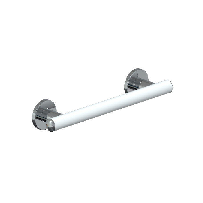 Recubrimiento en polvo termoendurecible de alta calidad antidesgaste color blanco brillante, con propiedades antibacterianas de iones plata bioGoman. Conexiones a la pared y juntas cromadas. Completo con tornillo de unión avellanado Ø10, placas de fijación a la pared de acero inoxidable AISI 304, con 6 agujeros y rosetas de acero inoxidable AISI 430 función antivandálica. Capacidad de carga 150kg. Peso de la barra: 1 kg.