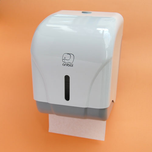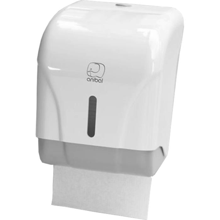 Dispensador industrial de papel mini mixto. Fabricado en ABS blanco, con aditivo antiestático para repeler el polvo.