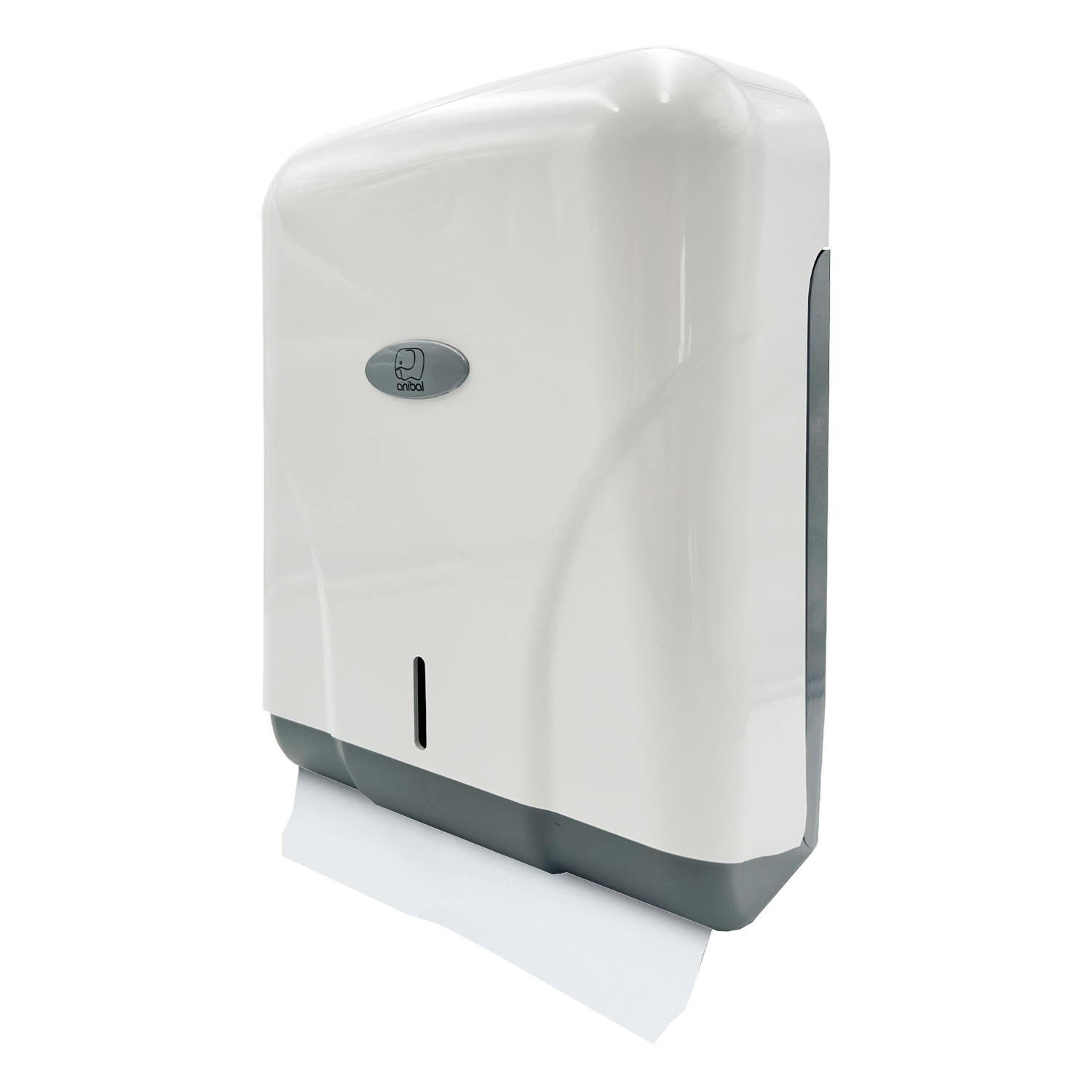 Dispensador de toalletas en formato zig-zag. Fabricado en ABS blanco.