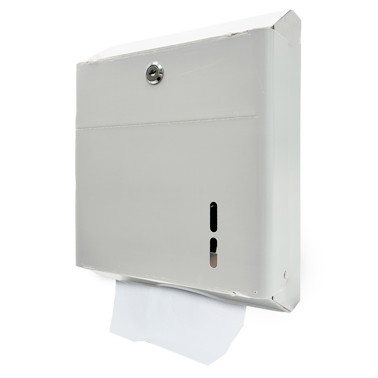 Dispensador de toalletas en formato zig-zag. Fabricado en acero inox. satinado.