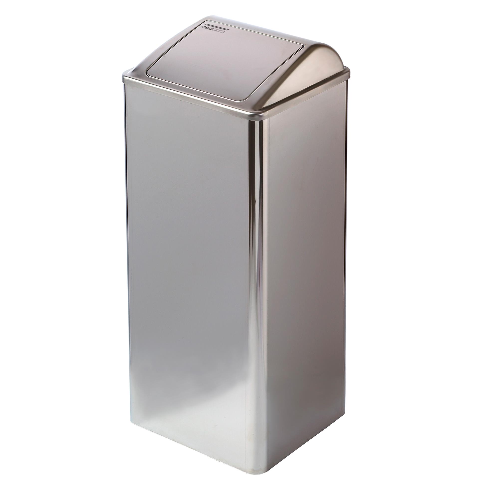 Papelera rectanguar con cabezal con tapa autoretorno de 80 L y de accionamiento manual. Acero inox acabado brillo.