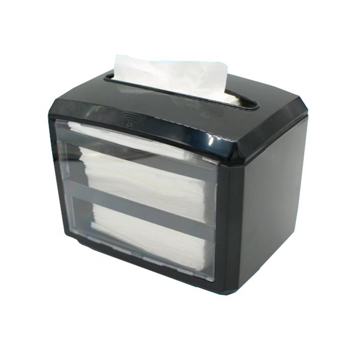 Dispensador de sobremesa rectangular para servilletas maxi servis. 2 laterales publicitarios en SAN transparente. Servilletas 0203237.
