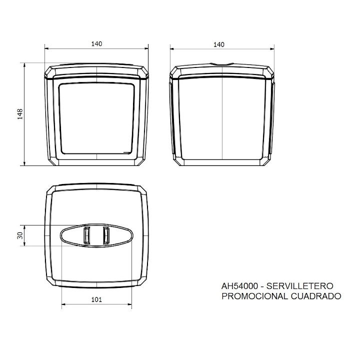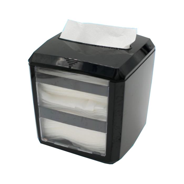 Dispensador de sobremesa cuadrado para servilletas 0205075. 2 laterales publicitarios en SAN transparente.
