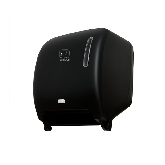 Dispensador óptico de papel bobina en continuo. Fabricado en ABS 50% reciclado post-consumo negro de alta calidad y resistencia.