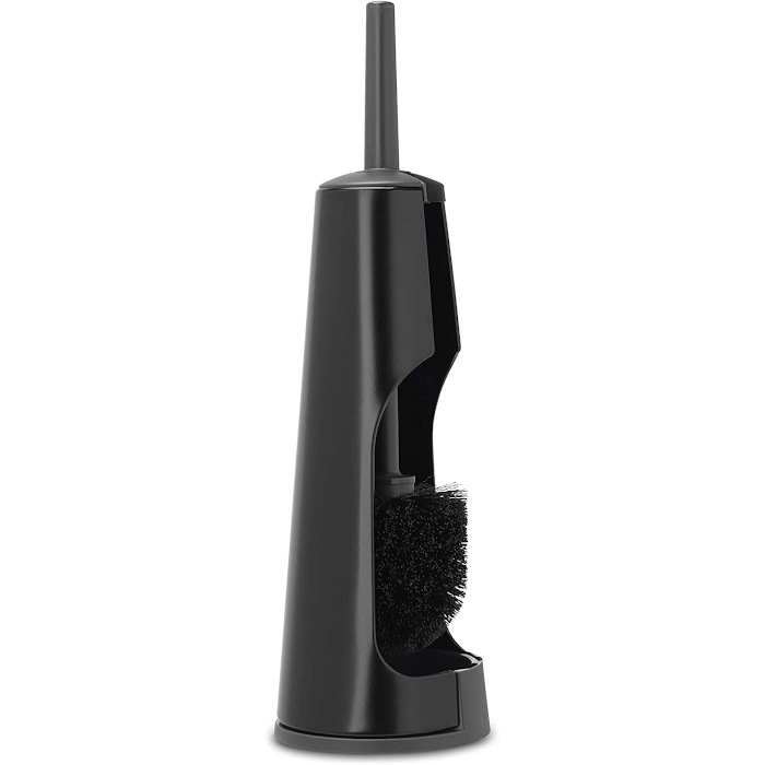 Escobilla de baño con soporte en color negro mate. Fabricado con materiales resistentes a la corrosión.