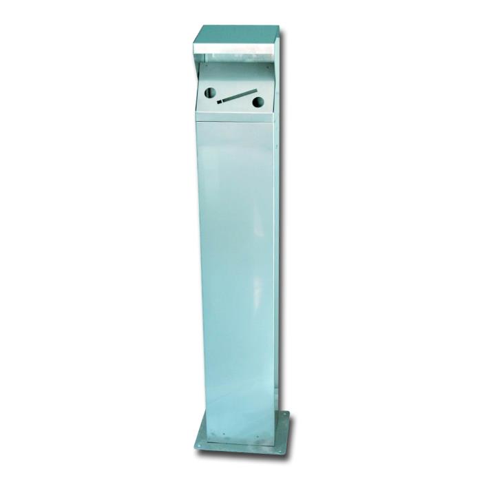 Cenicero acero inox 18/8 con colillero interior previsto de cerradura. Fijación al suelo.