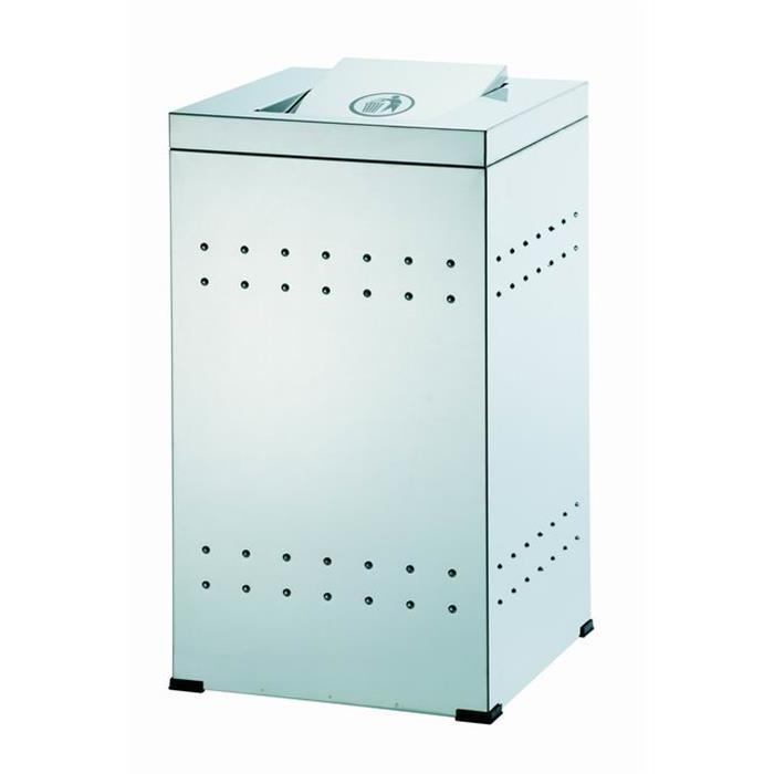 Papelera grandes superficies en acero inox.18/8. Con puerta trasera y depósito