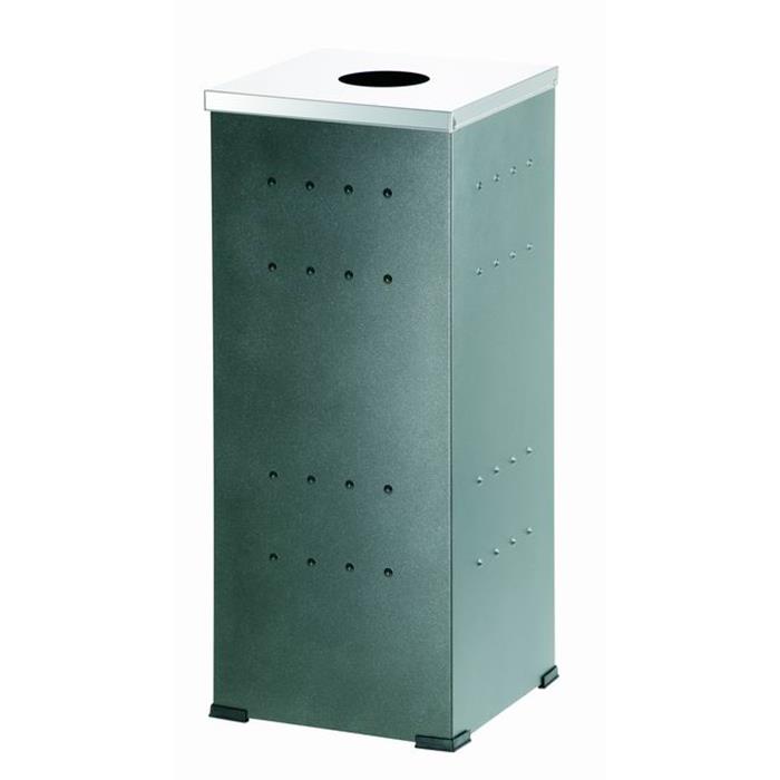 Papelera cuadrada de chapa zincada pintada en oxidon, con tapa abatible en acero inox. Depósito interior de chapa galvanizada de 7 décimas.