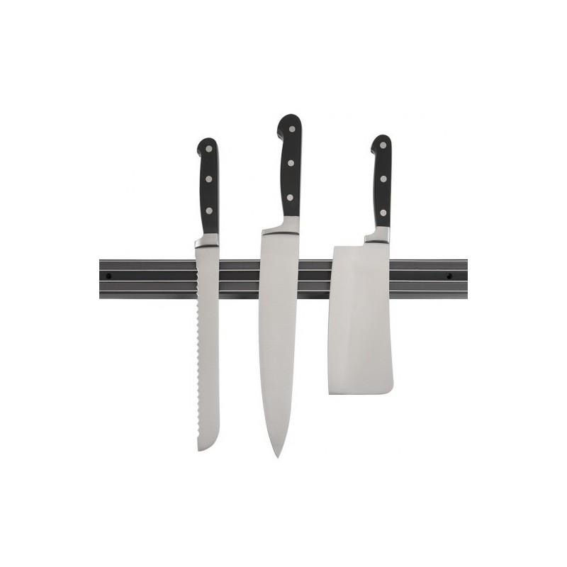 Soporte magnético para cuchillos de hierro en color negro.