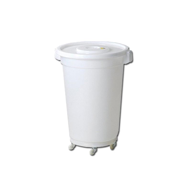 Contenedor blanco con tapa y ruedas. Capacidad 150 L.
