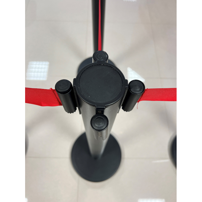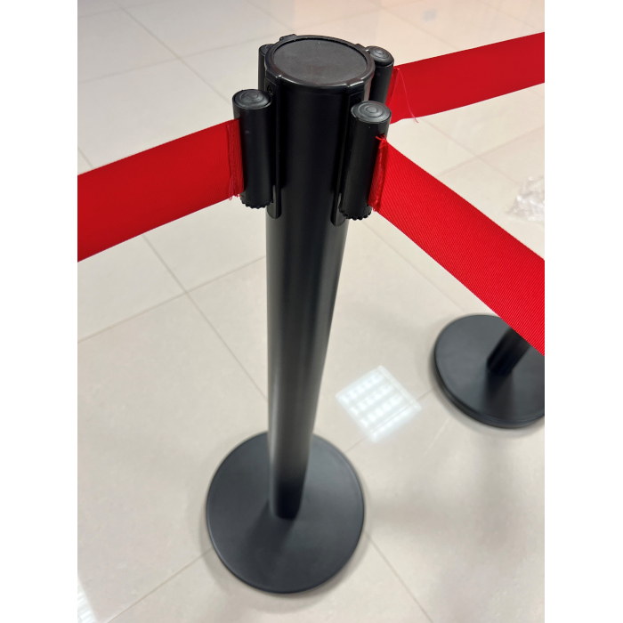 Columna negra con cinta retractil roja de 2 metros.