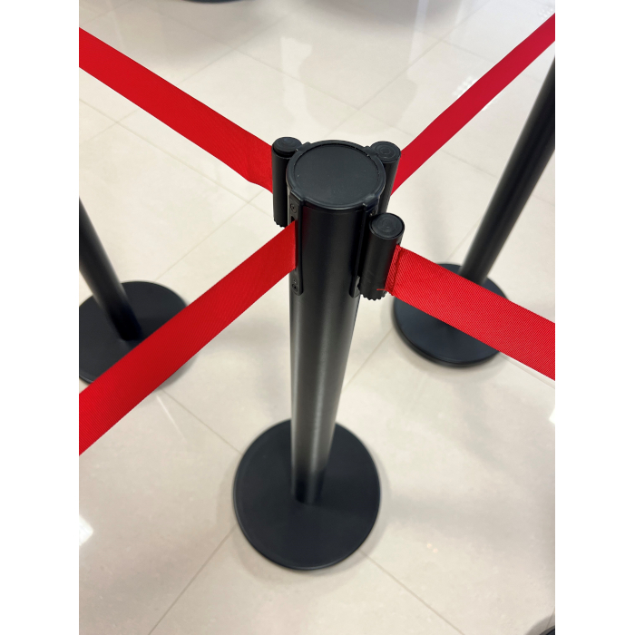 Poste de pie negro con cinta retractil 2m ROJA
