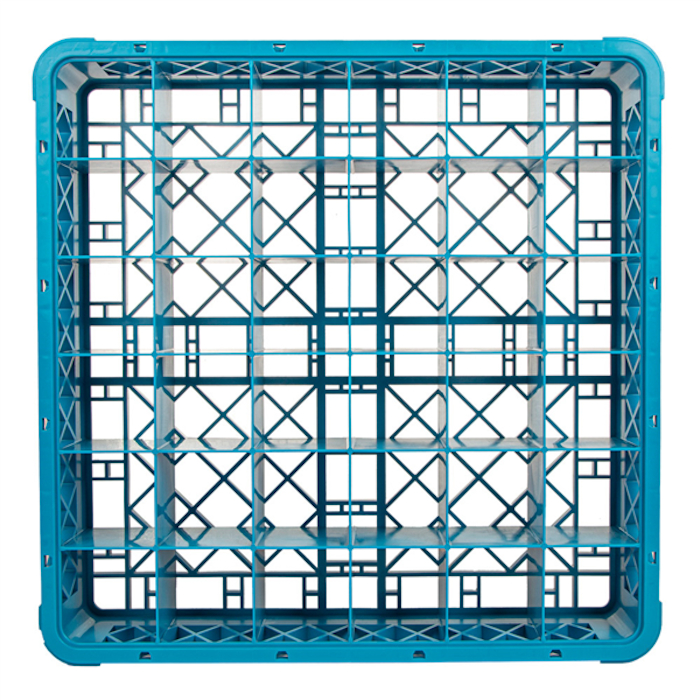 Base azul de polipropileno para 36 vasos y copas de hasta 7,3 cm de diámetro.
