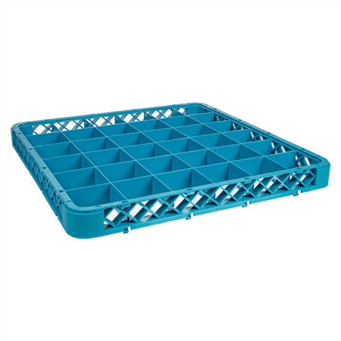 Suplemento azul de polipropileno para base de 36 compartimentos para vasos y copas de hasta 7,3 cm de diámetro.