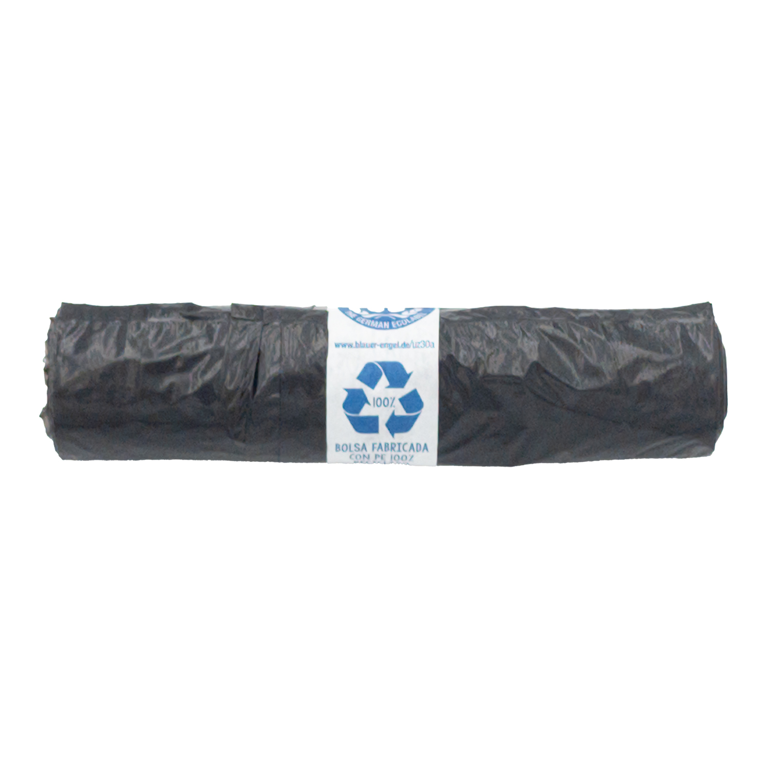 Bolsa negra para papeleras de hasta 57 l. Galga 100. Fabricada con polietileno de baja densidad reciclado.