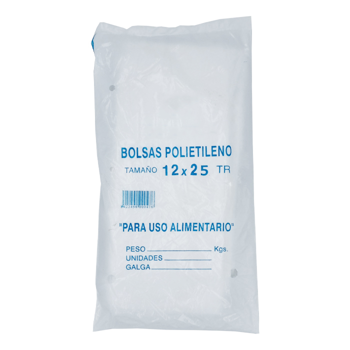 PAQ. 0,8 KG BOLSA TRANSPARENTE 12X25 CM