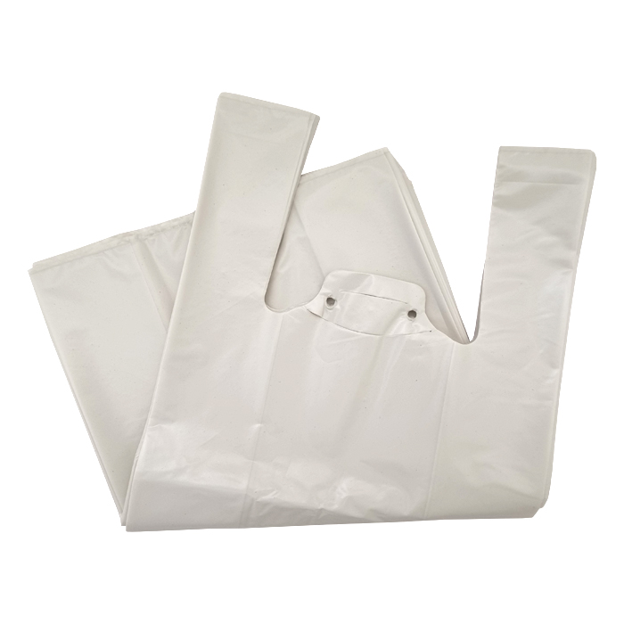 Bolsa de camiseta blanca de polietileno de media densidad 70% reciclado.
