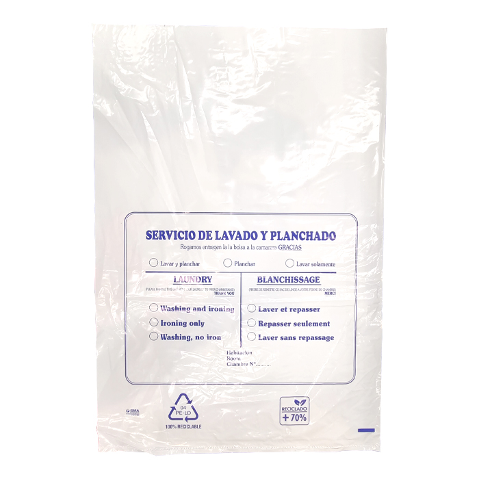 Bolsa de lavandería fabricada en polietileno PELD Blanco Opaco, fabricada por extrusión (RECICLADO 100%).