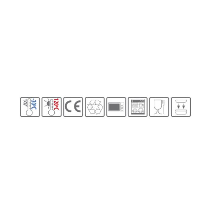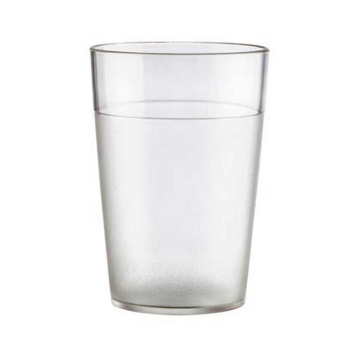 Vaso apilable, desprovisto de nervios interiores para facilitar la limpieza. Disminuye el peso considerablemente con los fabricados en cristal. Irrompible en condiciones normales de uso. Apto para lavado en lavavajillas y calentamiento en microondas. No trasmite variaciones de temperatura inicialmente al alimento que contiene. Soporta temperaturas entre -30º a +120º C.