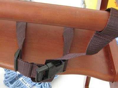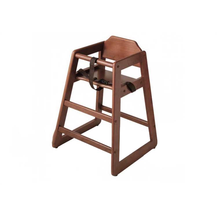 Trona de madera acabado nogal. De construcción resistente en madera dura. Lavables, con cintas reemplazables.