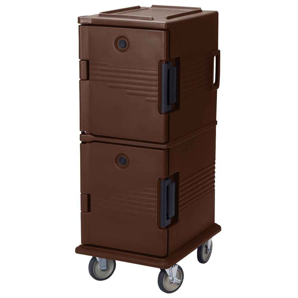 Para 4 recipientes GN 1/1 de 20 cm, 8 recipientes GN 1/1 de 15 cm, 12 recipientes GN 1/1 de 10 cm ó 16 recipientes GN 1/1 de 6,5 cm. Construidos en armazón de polietileno y espeso aislante de hule espuma. Con juntas herméticas desmontables. Cierres de nylon. Las puertas se abren completamente hasta los costados. Tienen asas premoldeadas para una mayor maniobrabilidad. Esquinas premoldeadas para minimizar daños en paredes, muebles y otros equipos.