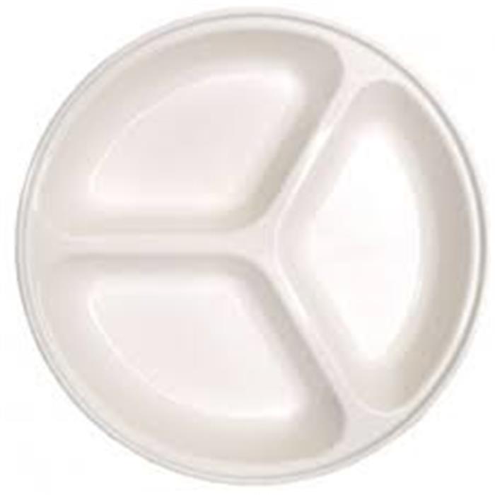 Plato de 3 compartimentos de policarbonato blanco.