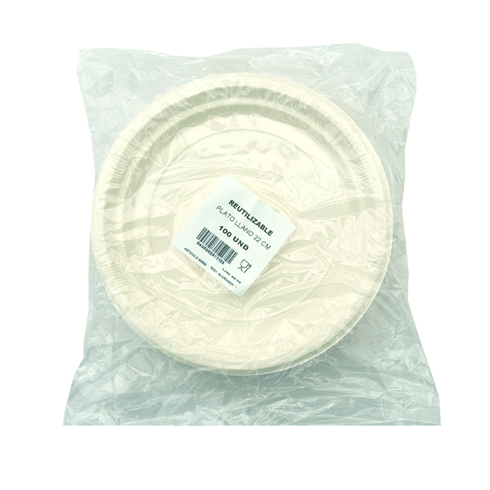 PAQ. 100 PLATO REUTILIZABLE PLASTICO 22 CM 80605