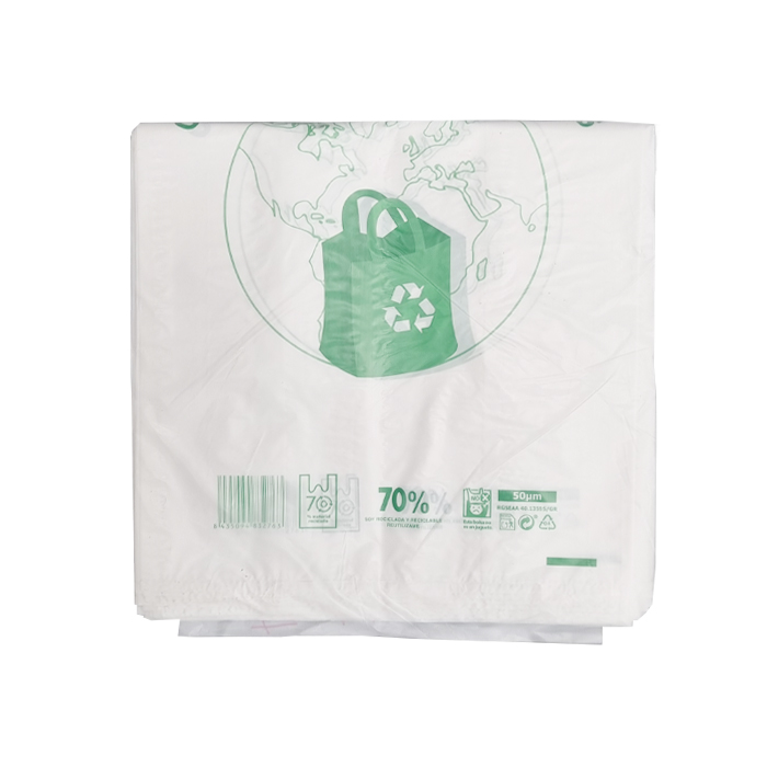 PAQ. 1 KG BOLSA CAMISETA 48X60 CM 70% PLAST. RECIC.