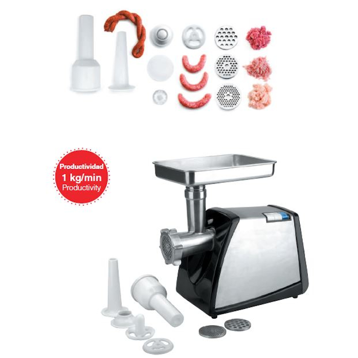 Picadora de carne eléctrica semiprofesional. Potencia: 800 W. 1 kg/min. Accesorios incluidos.