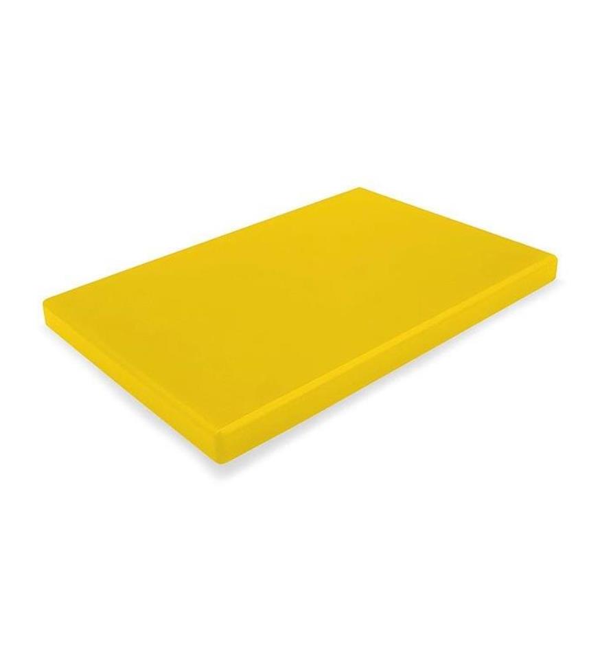 Tabla de corte amarilla de polietileno para aves. Gastronorm 1/1. Tacos antideslizantes.