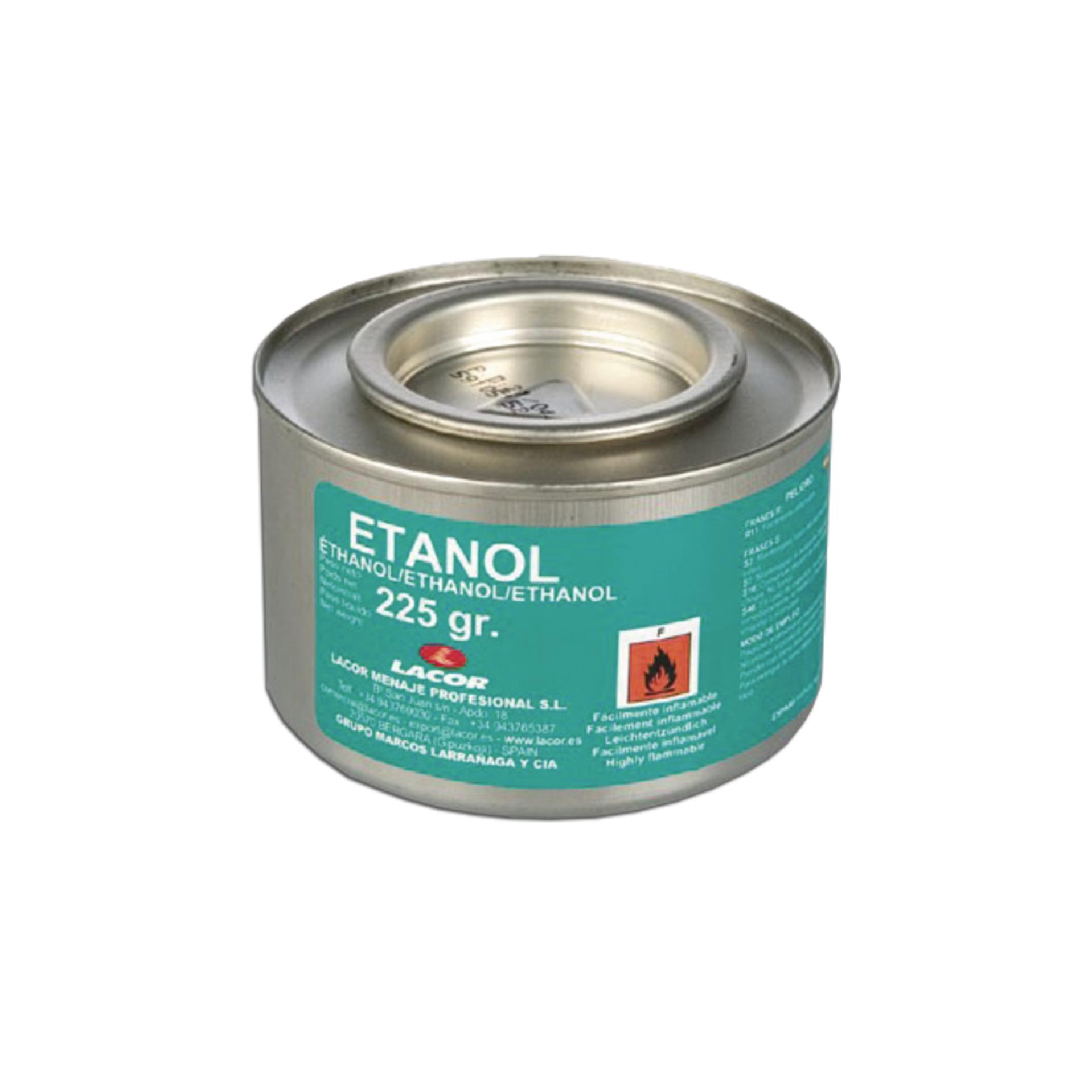 Lata gel de combustible Etanol de 225 gr. Capacidad para 3 horas de combustión.