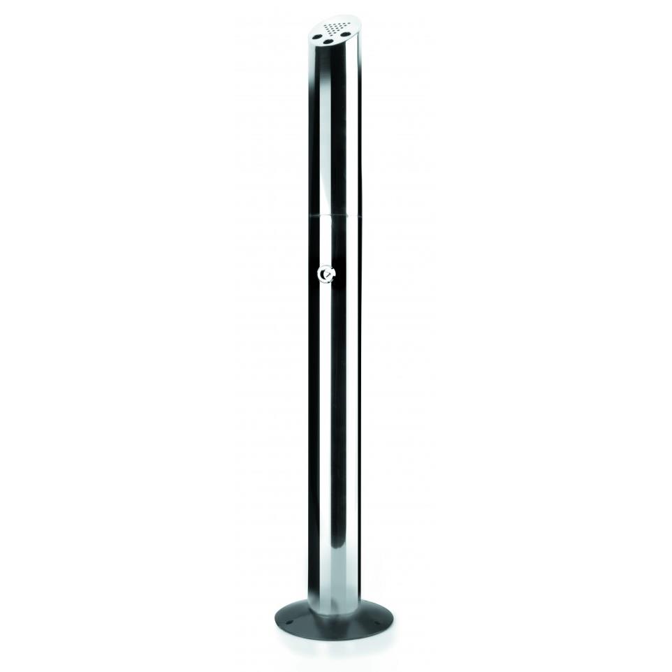 Cenicero redondo de pie en acero inox 18/8. Apto para exterior.