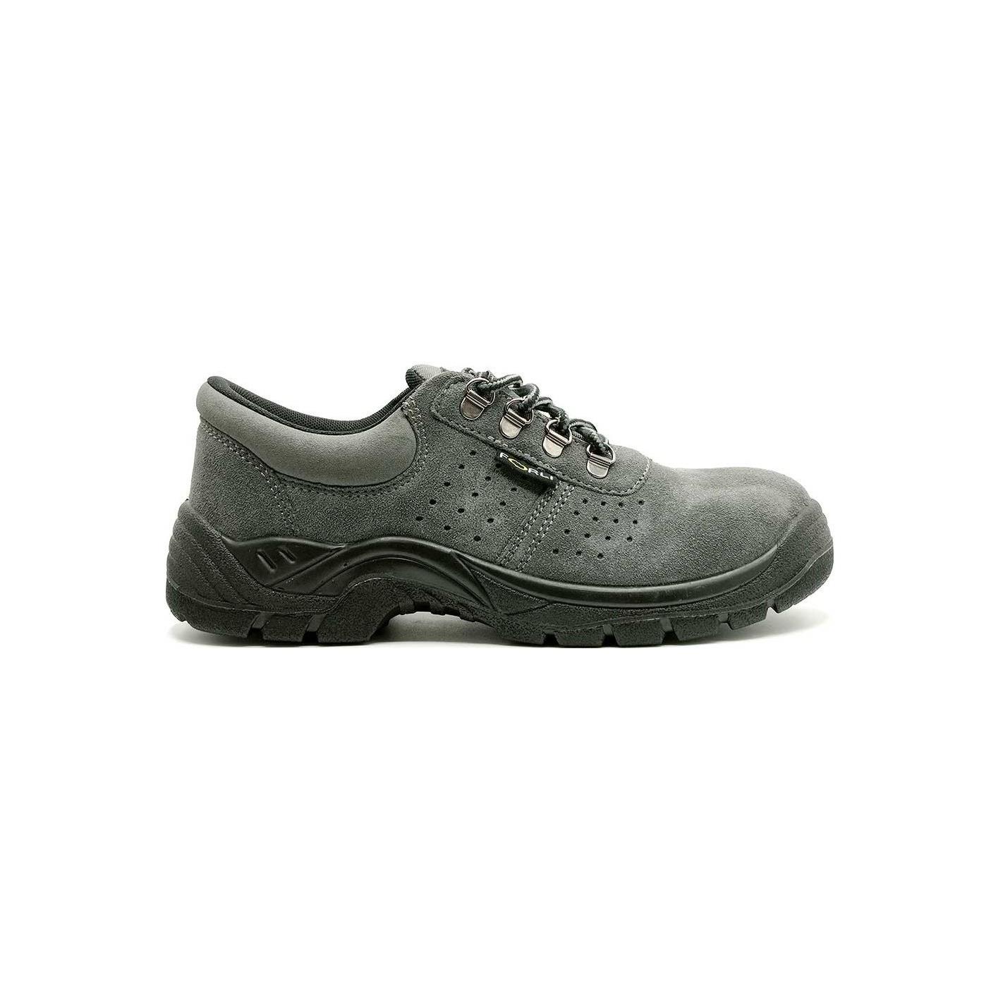 Suela: PU/PU doble densidad. Forro: Material de base poliamida antialérgico. Corte: piel acabado serraje. Plantilla: antiperforación. Puntera: de acero.