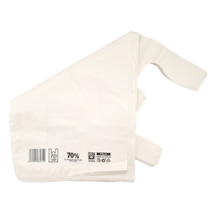 PAQ. 1 KG BOLSA ASA CAMISETA BLANCA 42X53 CM 70% PLAST. RECIC.