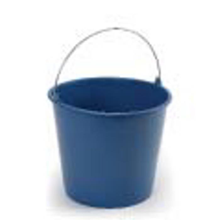 Cubo azul redondo de 6 litros reciclado, con asa de metal. Fabricado en polietileno.